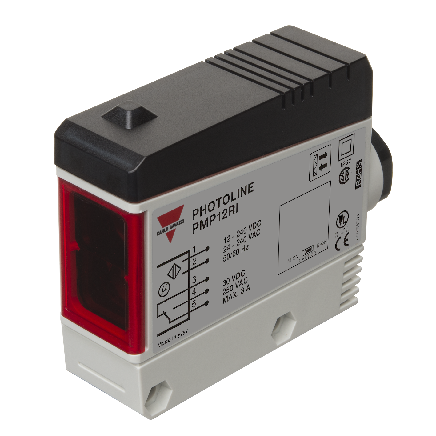 Polarized Retro-reflective, Photoelectric Sensor, range 12 m, Polarized Red modulated light 660nm, Power Supply 10.8-264VDC&21.6-264VAC, Relay SPDT, NO+NC, Terminals, IP67. 1/2\\\\