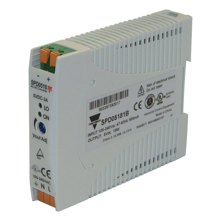 Switching Power Supply, AC/DC, 18W, 24V, Spring Terminals, IP20, DIN-Rail Mounting, Over-load, Over-voltage and Short-circuit Protections, 22.5x90x114mm housing