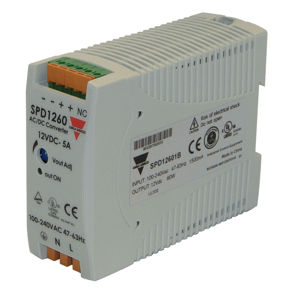 Switching Power Supply, AC/DC, 60W, 24V, Spring Terminals, IP20, DIN-Rail Mounting, Over-load, Over-voltage and Short-circuit Protections, 40.5x90x114mm housing