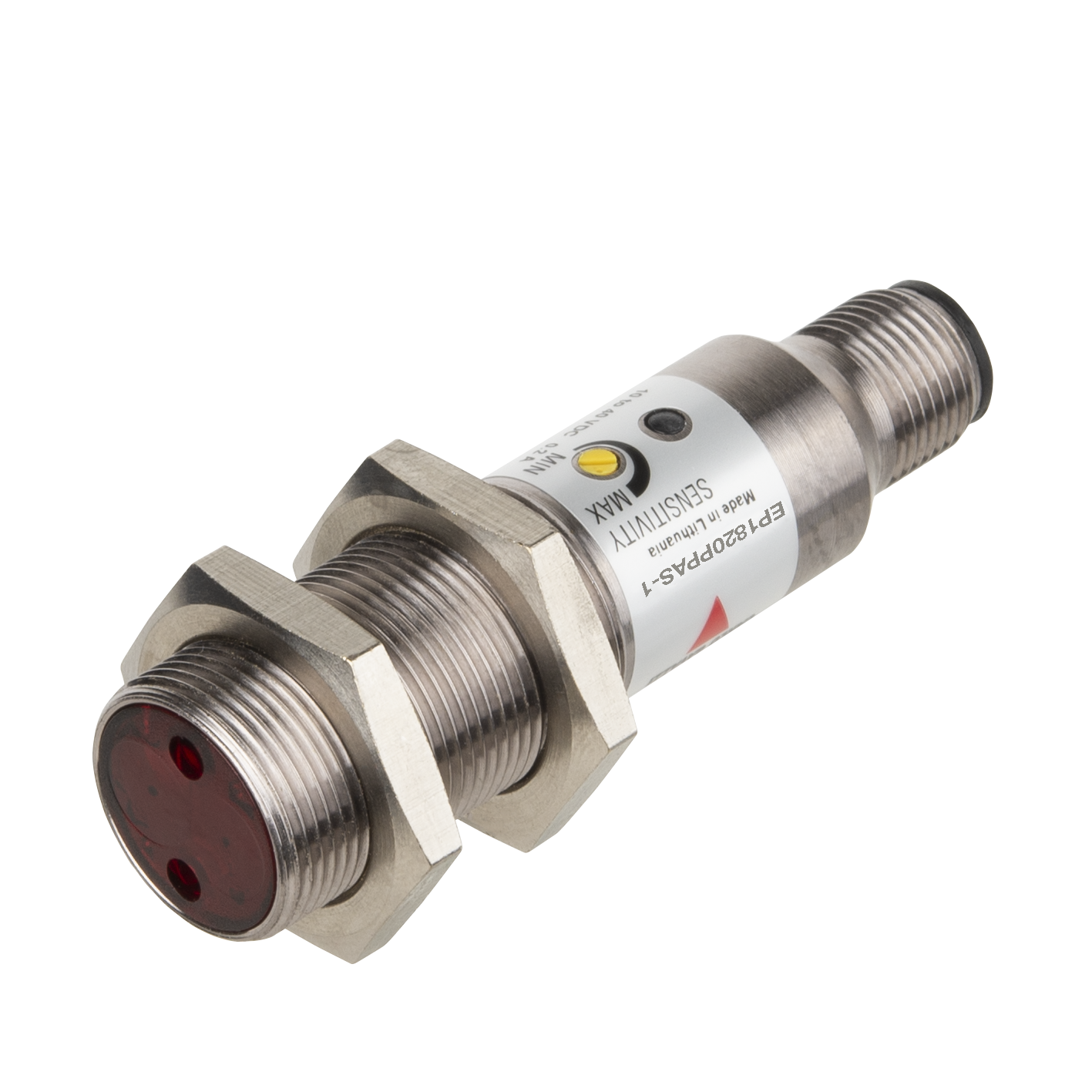 Polarized Retro-reflective Photoelectric Sensor, Range 2000mm, red polarized modulated light 660nm, Power Supply 10-40VDC, PNP Output, NO and NC, Light and Dark Switching, M12 Plug
