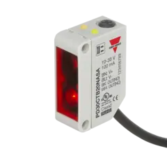 Diffuse-reflective Photoelectric Sensor with Adjustable Background Suppression, Range: 0-200mm, Polarity free red light 625nm, Power Supply 10-30VDC, NPN Output, N.O. and N.C., light and dark switching, Cable connection, 10x30x20mm housingSpesifikasjoner