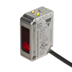 Diffuse-reflective Photoelectric Sensor with Adjustable Background Suppression, IO-Link, Range: 0-200mm, Polarity free red light 620nm, Power Supply 10-30VDC, NPN/PNP/Push-pull, N.O., N.C., 2m Cable, 11x31x21mm housing Stainless Steel, IP68 IP69K, ECOLABEspecificações