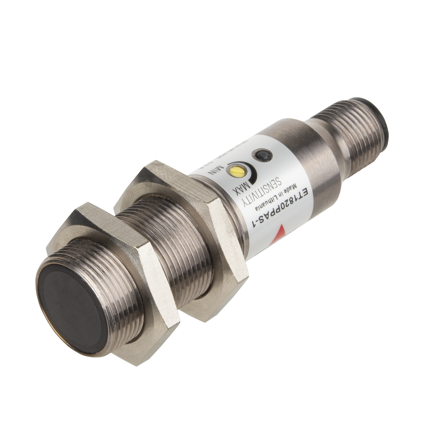 Through-beam Photoelectric Receiver, Range: 0-20000mm, Adjustable Sensitivity, infrared light 880nm, Power Supply : 10to40 VDC, N.O. and N.C., light and dark switching, M12 connection, M18 housing